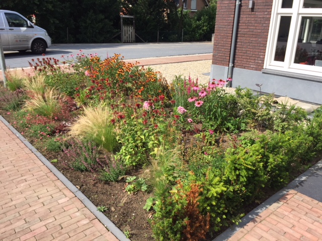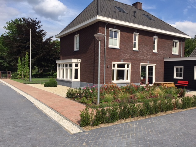 Dit prachtige herenhuis, verdiende ook een mooie tuin. In deze tuin met zowel speelse als strakke vormen is mooie beplanting aangebracht. Verder is er een mooi terras gemaakt en een groot grasveld waar de kinderen heerlijk kunnen spelen.
